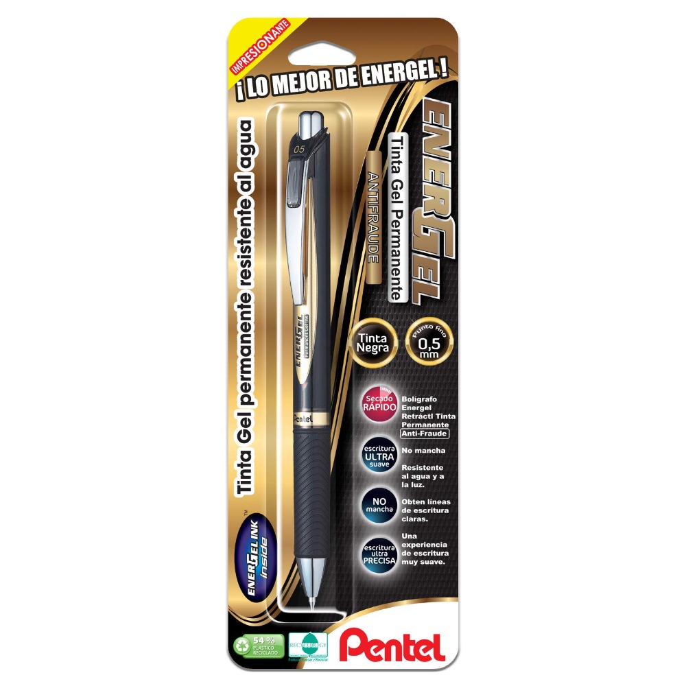 BOLIGRAFO RETRAC. ANTI-FRAUDE NEGRO P. FINO 0.5 MM BP/1 SERIE ENERGEL PENTEL BLP75BP-A
