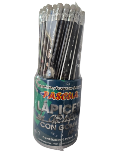 BOTE DE LAPICES DE GRAFITO HB#2 NEGRO Y PLATA B/72 PZAS. PASCUA LAM-B72AA
