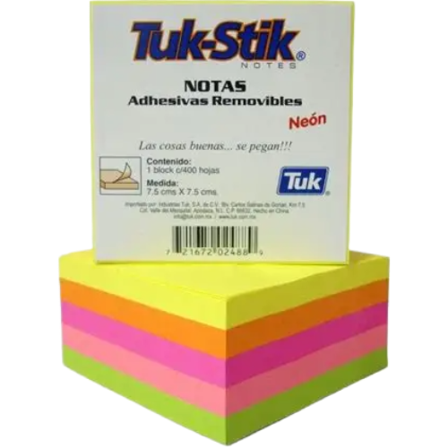 CUBO DE NOTAS ADH. NEON 7.5 X 7.5 C/400 H TUK-STIK