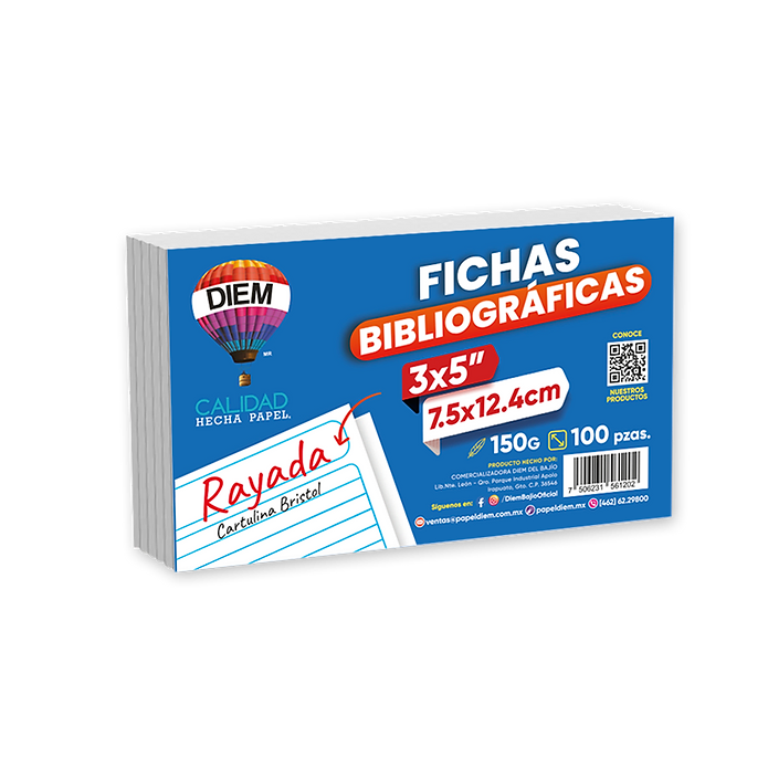 FICHA BIBLIOGRAFICA RAYADA 3X5 150G C/100