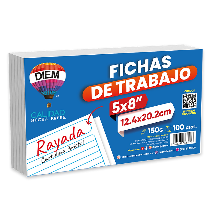FICHA TRABAJO BLANCA 5X8 150G PAQ 100 DIEM