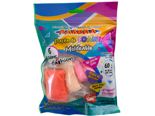 FOAMY MOLDEABLE PQT. 6 COLORES SURT. FASHION PASCUA FM-6COL2
