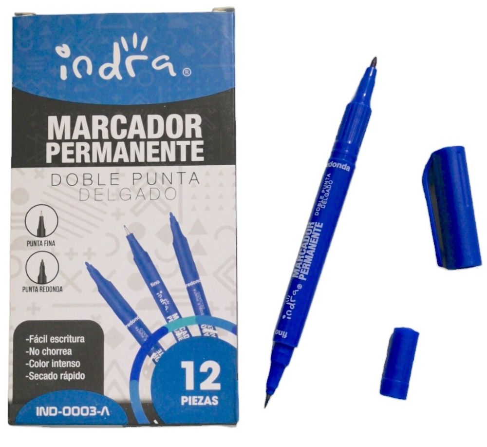 MARCADOR PERMANENTE DELGADO DOBLE PUNTA AZUL INDRA IND0003A