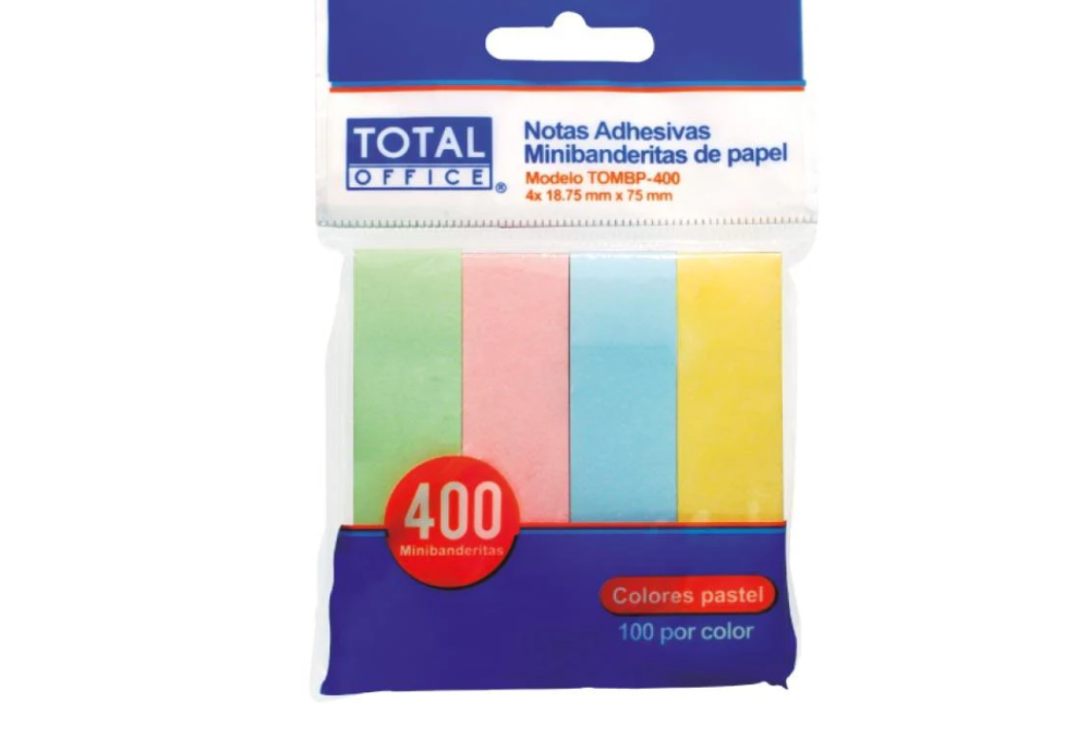 MINIBANDERITAS COLORES PASTEL P/400 TOMBP-400 TOTAL OFFICE 4X18.75X75