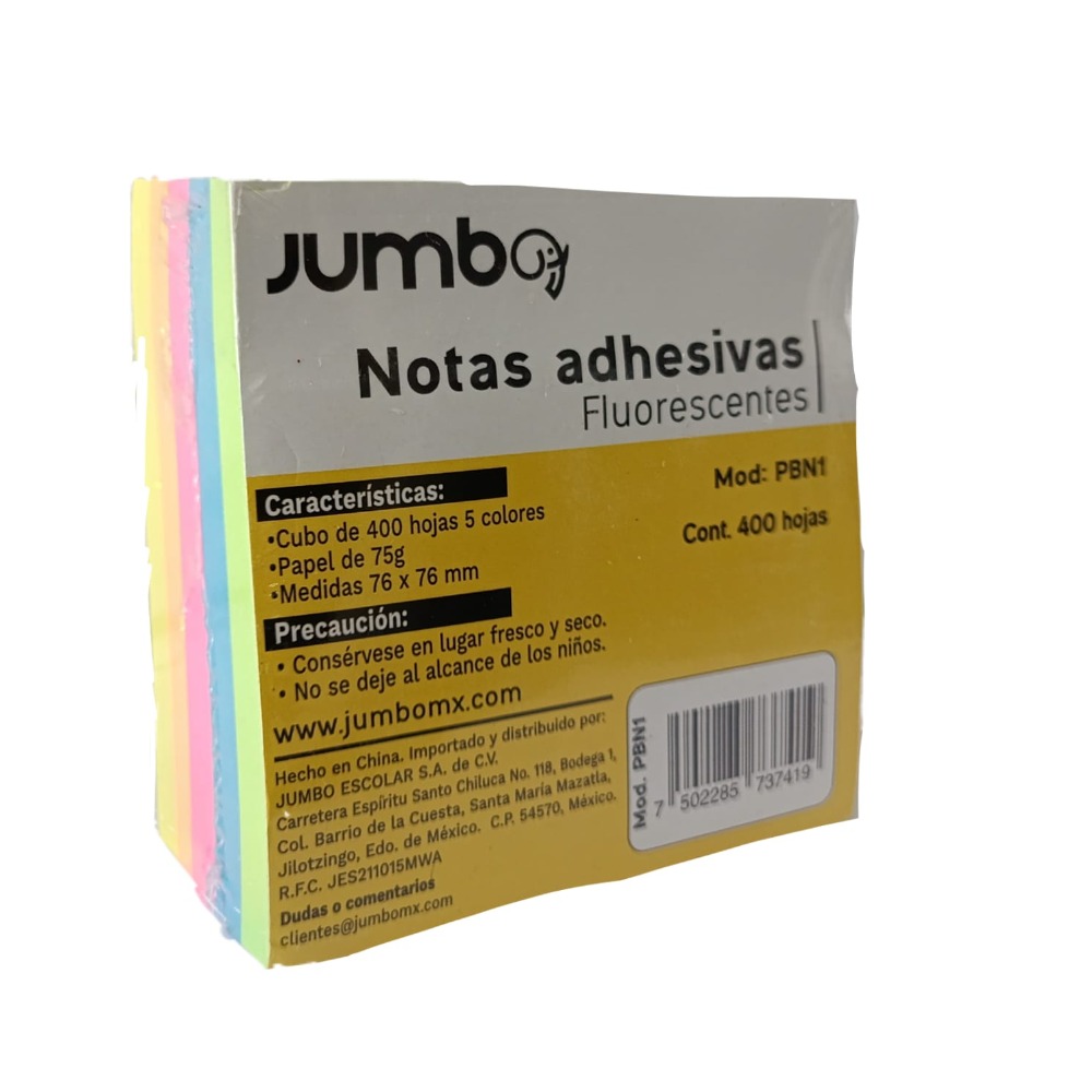 NOTAS ADHESIVAS FLUORESCENTES 400H 7.6 x 7.6 cm JUMBO PBN1