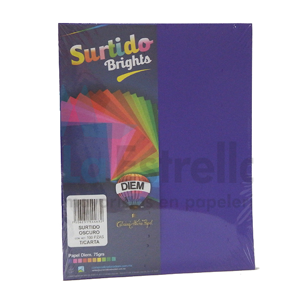 PAPEL DIEM BRIGTHS CARTA SURTIDO OSCURO 75G PAQ. 50