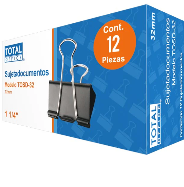 PINZA SUJETADOCUMENTOS 32MM C/12 TOTAL OFFICE