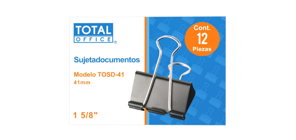 PINZA SUJETADOCUMENTOS 41MM C/12 TOTAL OFFICE
