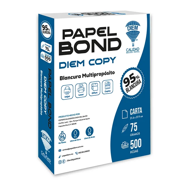 RESMA DE PAPEL BOND DIEM OFICIO 75 grs. 97% BLANCURA
