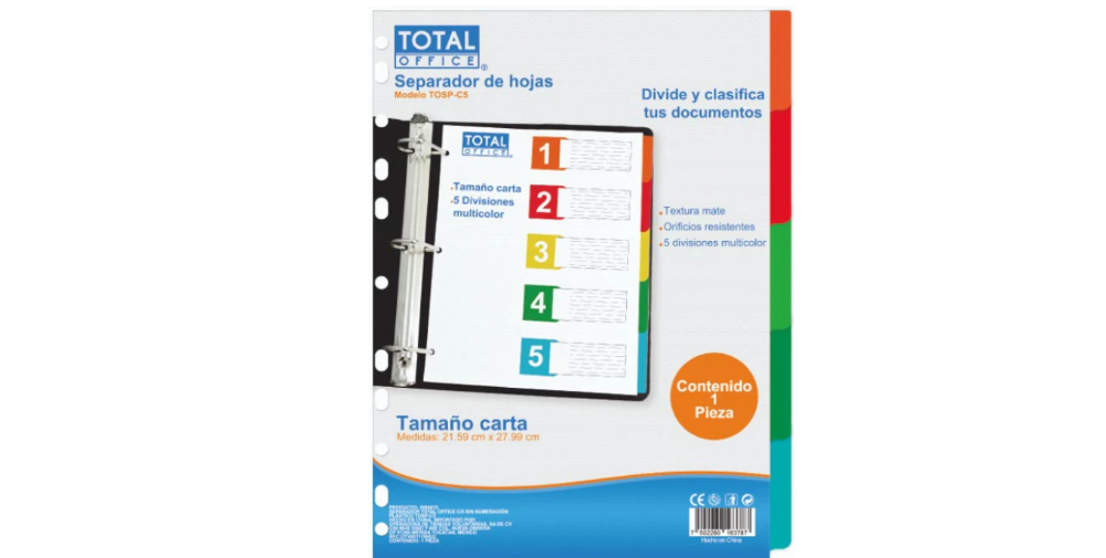 SEPARADOR 5 DIV SIN NUMERO PLASTICO TOTAL OFFICE