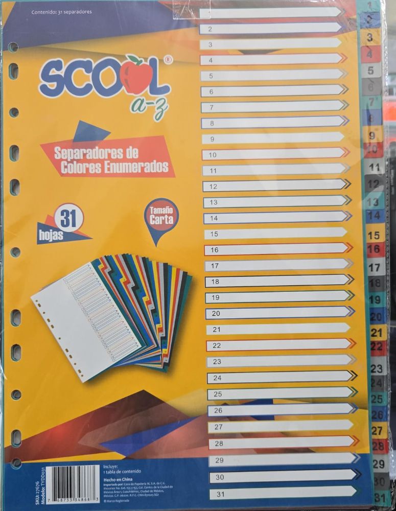SEPARADOR DEL 1-31 C/ NUMERO SCOOL