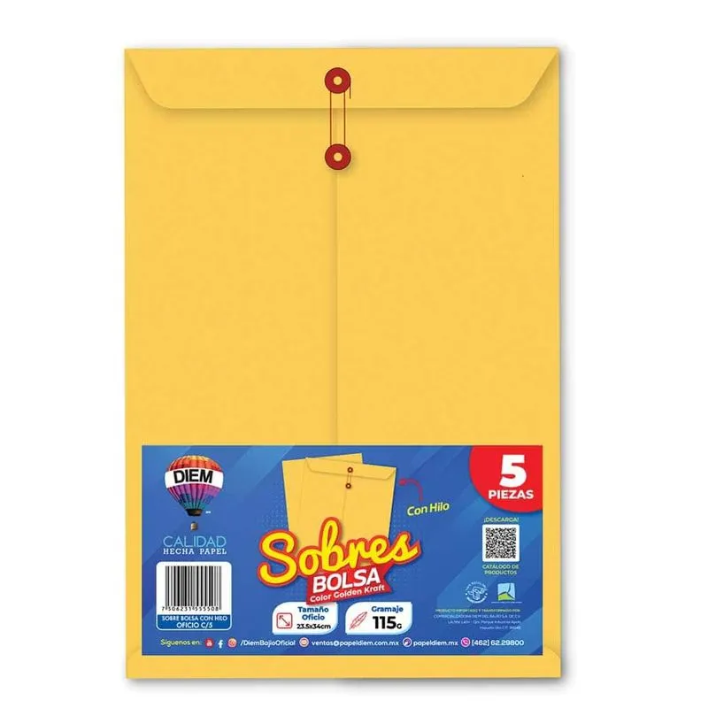SOBRE DIEM BOLSA CON HILO OFICIO GOLDEN KRAFT 115G 23.5X34